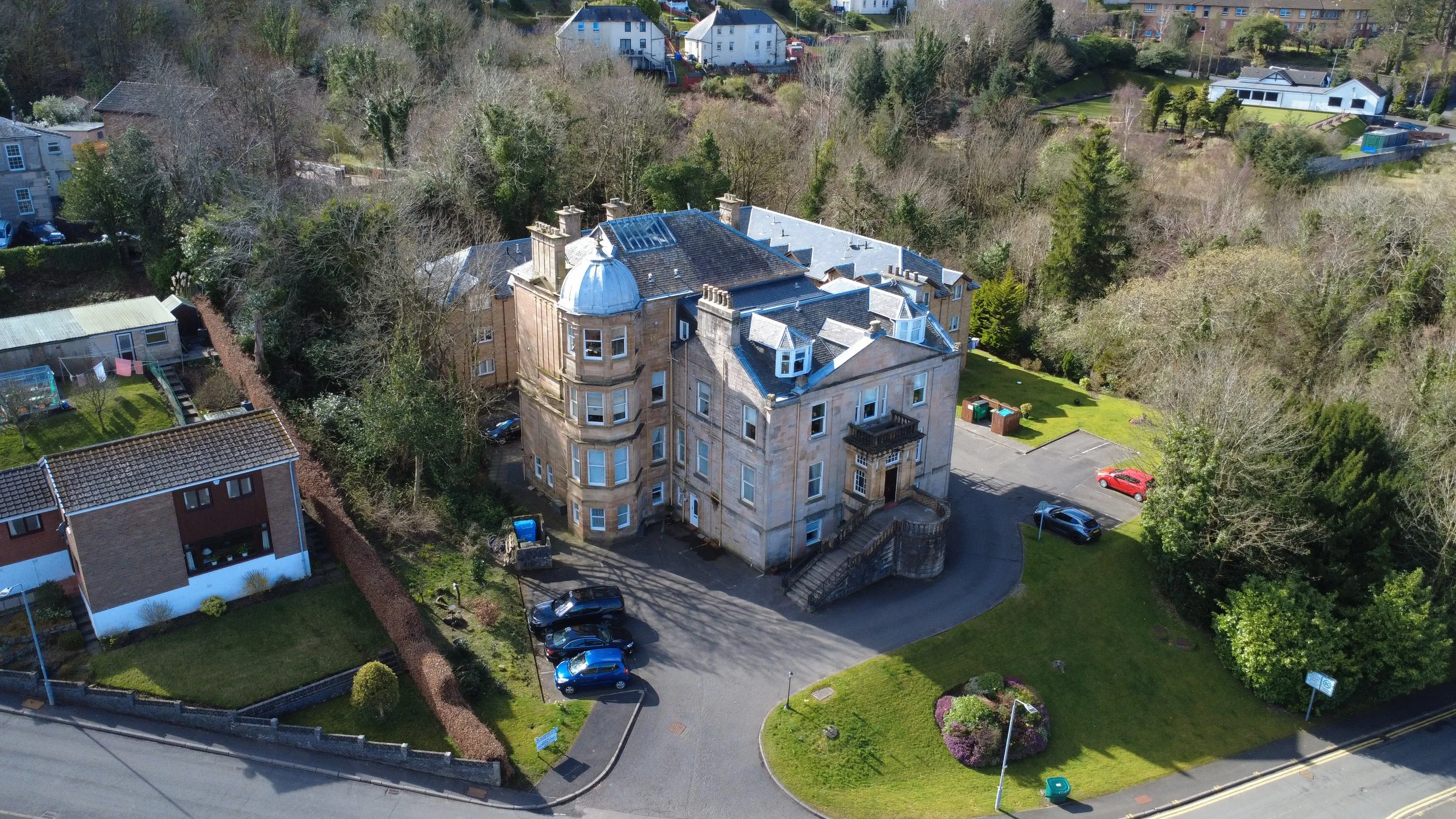 Originally built in the early 19th century, this French-inspired two-storey mansion and basement was converted into apartments in the early 2000s, with its elevated position providing breathtaking views over Port Glasgow town centre and the River Clyde.